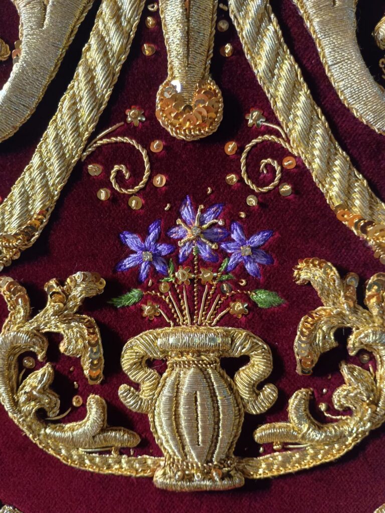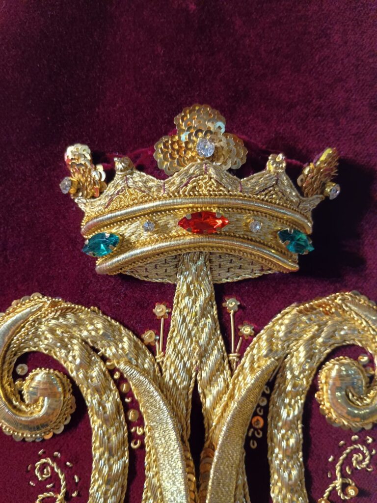 Durante el primer día de triduo fue presentado y bendecido el nuevo Guion Corporativo de nuestra Hermandad. La pieza, realizada por el Taller de Bordados en Oro y Sedas Ntra. Sra. de los Ángeles, sigue la línea estética de los trabajos elaborados para nuestro nuevo estandarte.