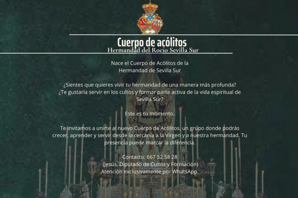 Te invitamos a unirte al nuevo Cuerpo de Acólitos, un grupo donde podrás crecer, aprender y servir desde la cercanía a la Virgen y a nuestra hermandad. Tu presencia puede marcar la diferencia.