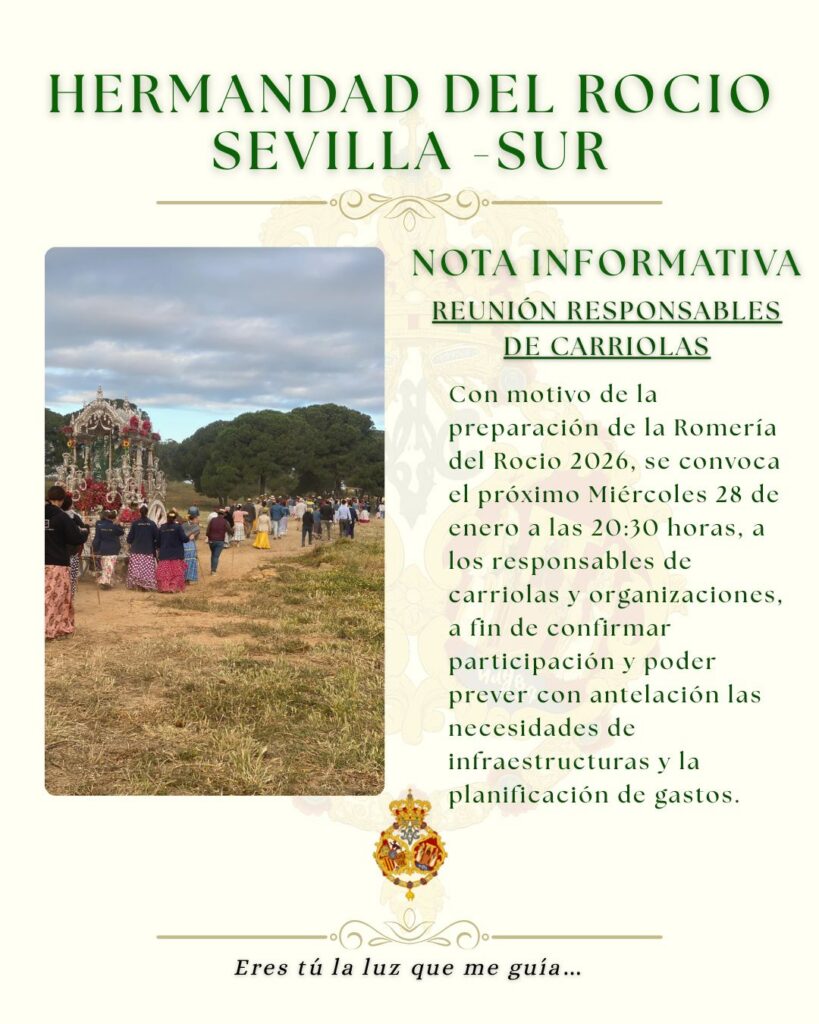 Reunión de responsables de carriolas / Noticias / Por Hermandad Comparte esto: Comparte en Facebook (Se abre en una ventana nueva) Facebook Compartir en X (Se abre en una ventana nueva) X Compartir en WhatsApp (Se abre en una ventana nueva) WhatsApp Relacionado