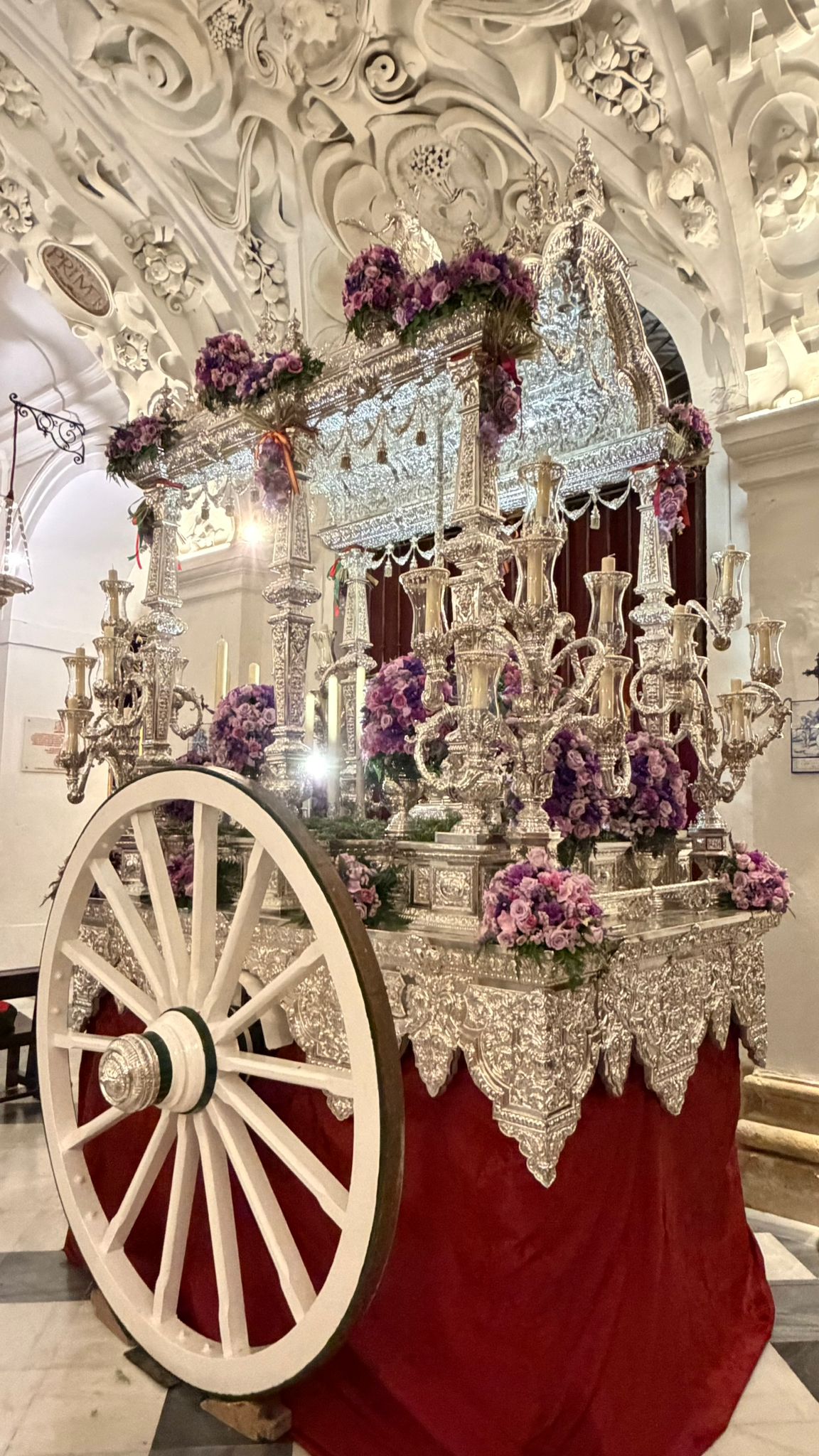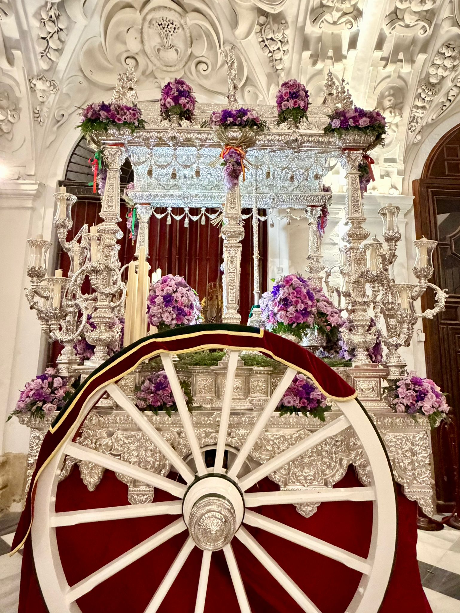 Así luce la carreta de Nuestro Bendito Simpecado para el regreso tras el Pregón de las Glorias 2026.